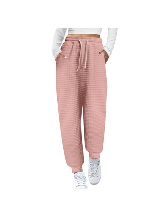 Waffle Knit Sweatpants For Women Elastic Waist Drawstring Loose Cinched Bottom Jogging Sweat Pants With Pockets Xx Large White Walmart Com